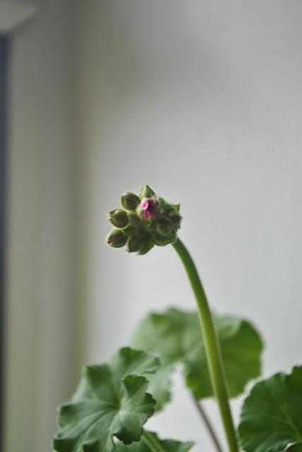 Even the geranium's joining in and has put out a pink bud or two.